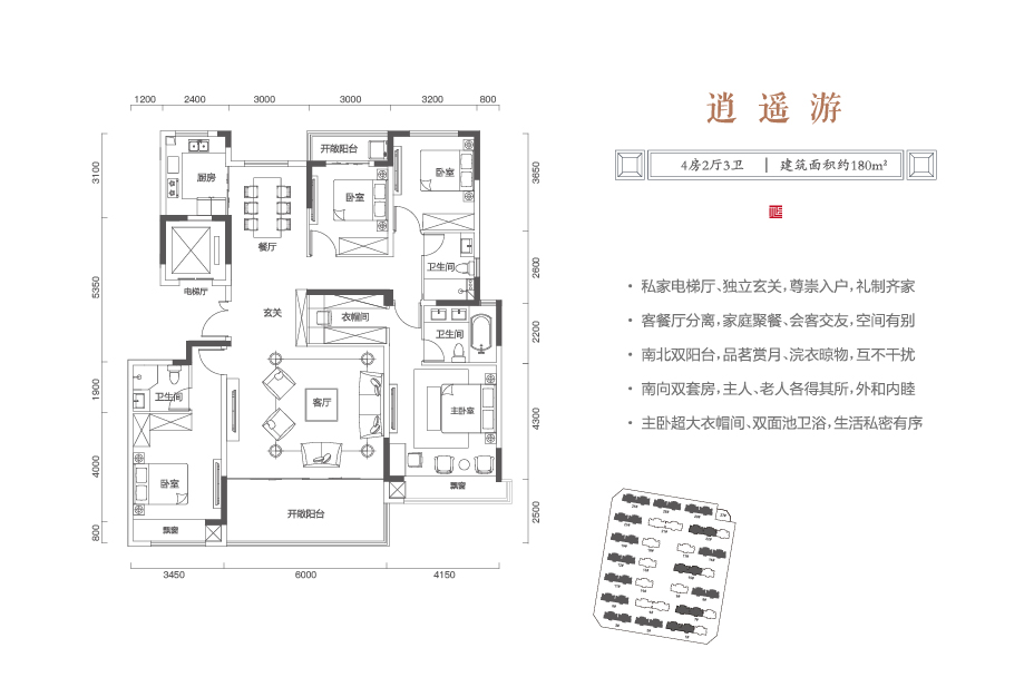 在户型设计上,以4房2厅3卫 【建筑面积175㎡】、4房2厅3卫 【建筑面积190㎡】、5房2厅3卫 【建筑面积240㎡】为主,空间布局方正,融合自然造物之美,致献中原塔尖人士。